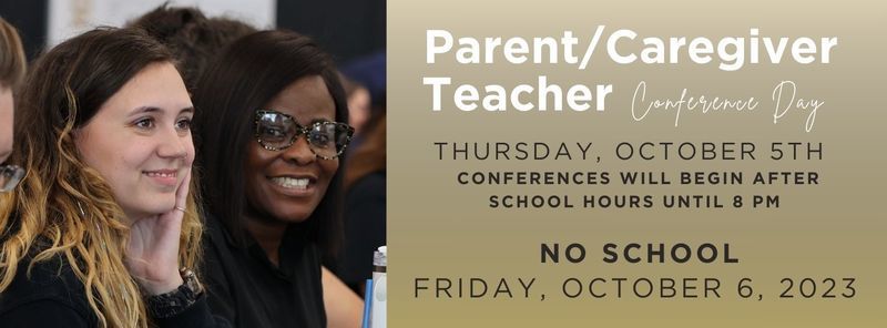 Our District-wide Parent / Caregiver Teacher Conference Day begins October 5th - October 6th. Scheduled conferences will begin after school hours until 8 pm on Thursday, October 5th. There is no school on Friday, October 6th, to accommodate time for our teachers and families to meet. Students do not attend school on that Friday, and it is not an eLearning day.