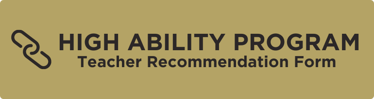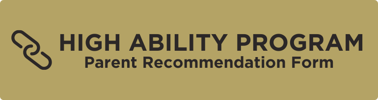 The High Ability Program Parent Recommendation Form for the 2022-2023 school year is now available!  Students are identified and placed based on state and district criteria, which may include achievement test scores, student ability, and parent and/or teacher recommendations. Parent recommendations are considered but do not guarantee placement into the High Ability Program.